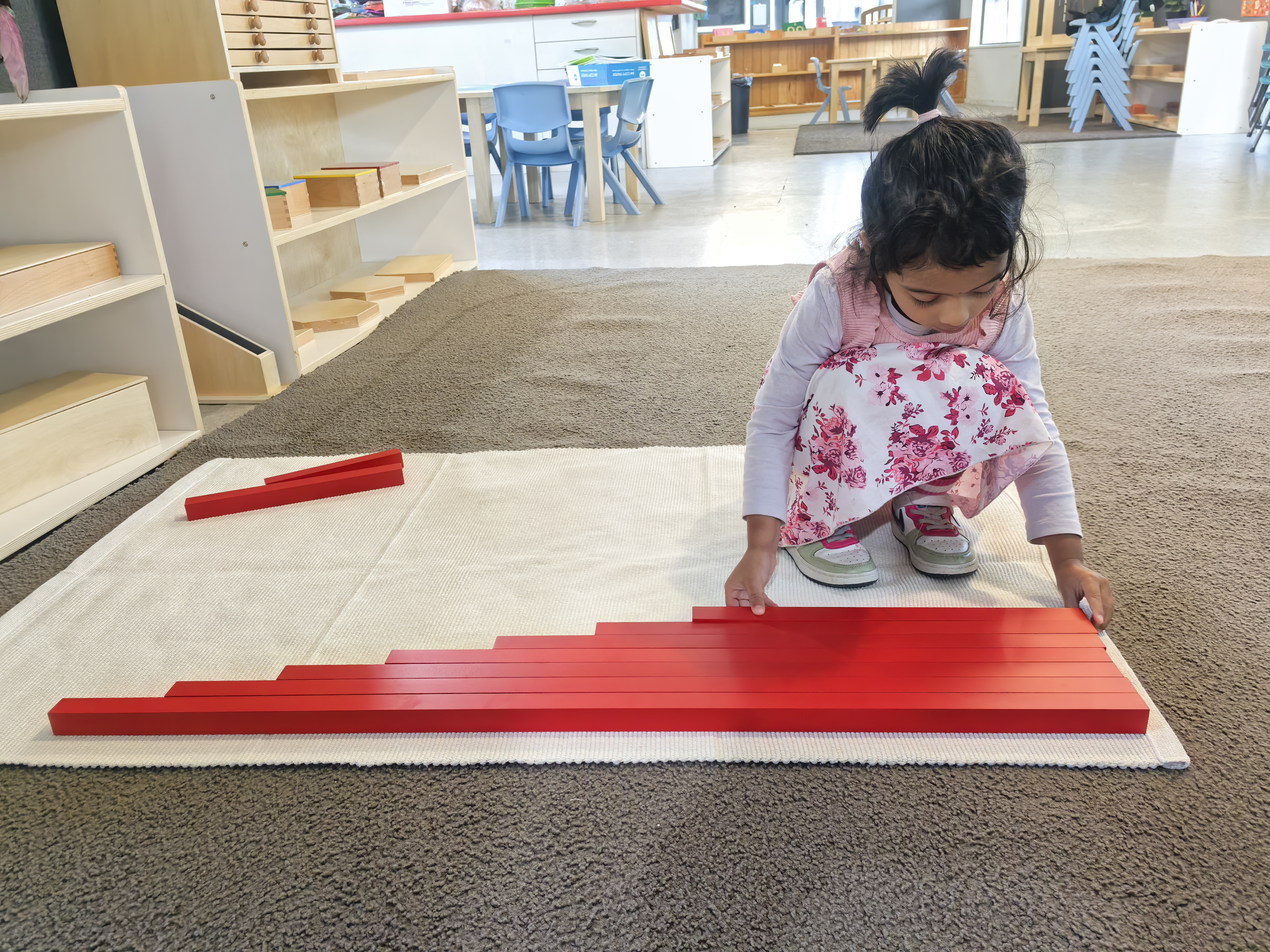 - Focus: Introduction to numbers, quantities, and basic math concepts through concrete materials.
